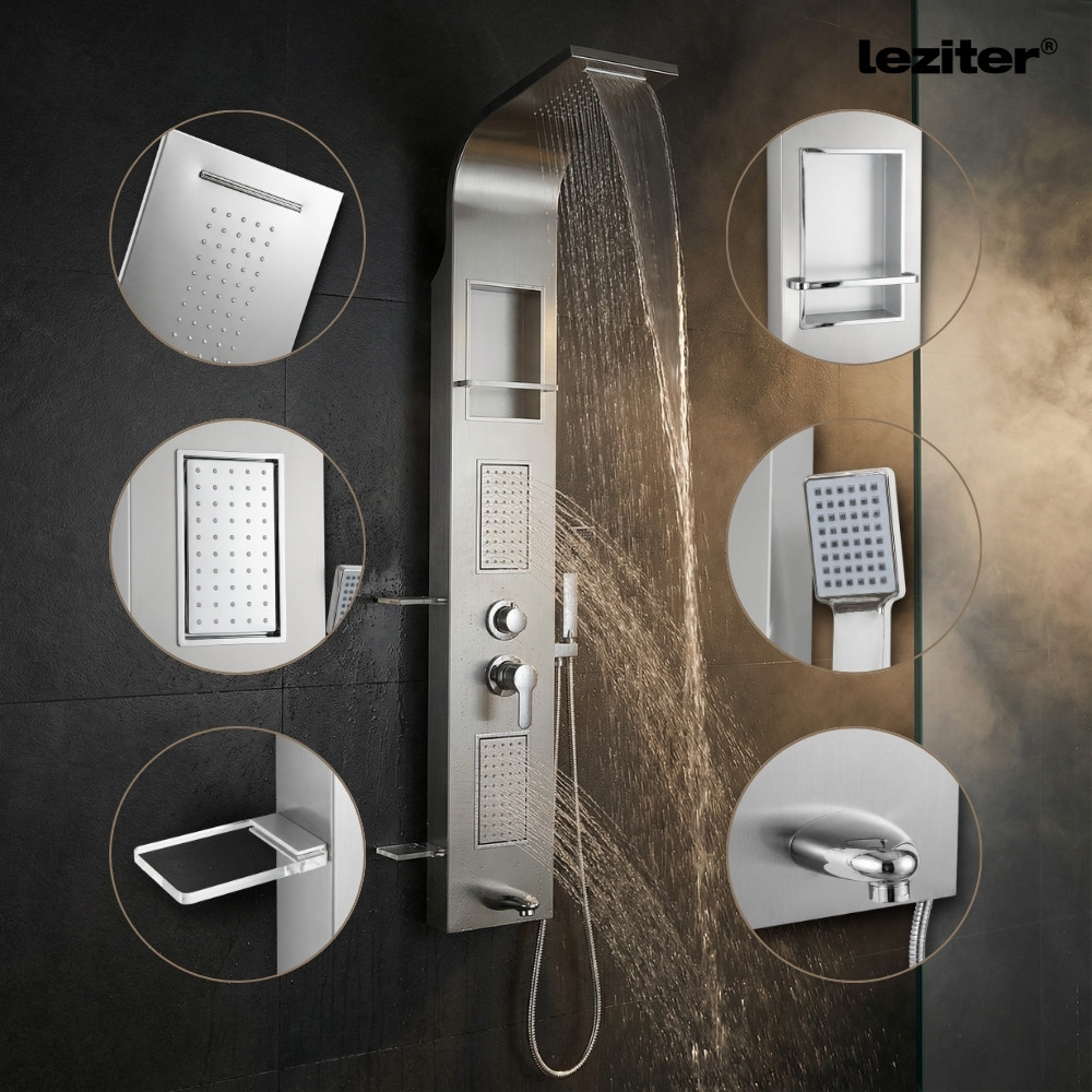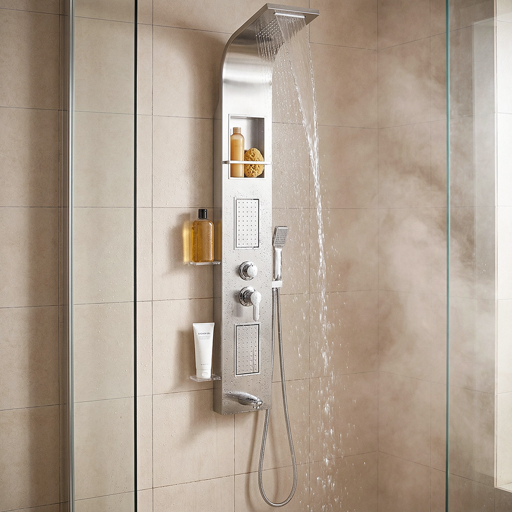Kiváló minőségű hidromasszázs zuhanypanel, igényes formáival, világos színeivel egyedi megjelenést kölcsönöz fürdőszobájának.