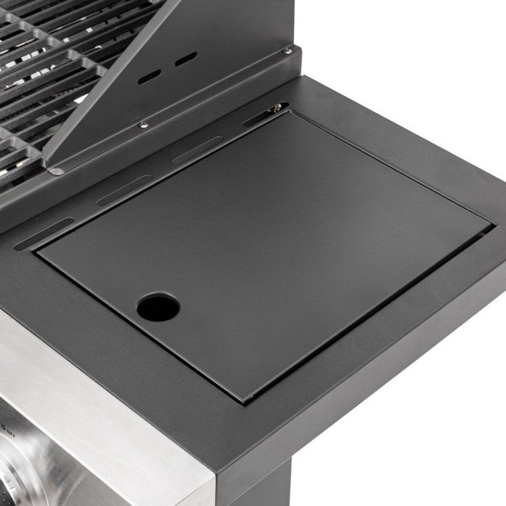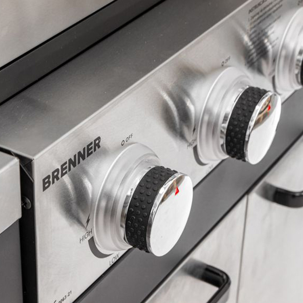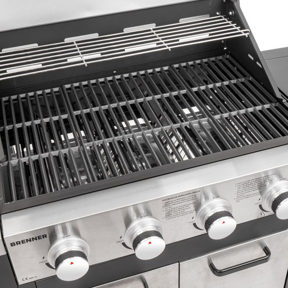 A gázgrill 4 fő égővel és egy további égővel rendelkezik, amely a sütés kényelmét szolgálja. A grill kezelőpanele rozsdamentes acélból készült , amely tökéletes kültéri használatra. A berendezés későbbi használatának kényelme érdekében a gombok háttérvilágítással rendelkeznek .