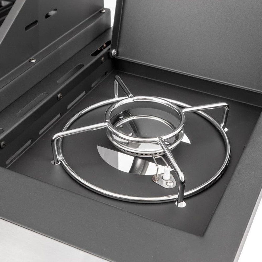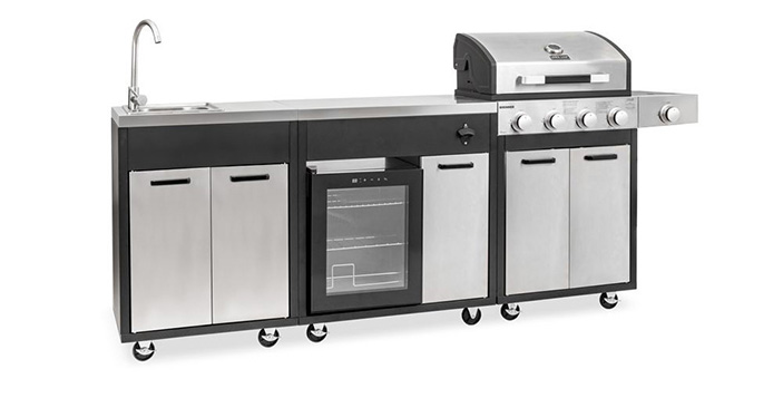 4 főégős és 1 segédégős gázgrill , melyen egyszerre több étel is elkészíthető. Tágas szekrény hűtőszekrénnyel az étkezés elkészítéséhez szükséges termékek tárolására. Hűtőszekrény polcokkal felszerelt italok tárolására, amelyek egy étkezés közbeni találkozó előkészítéséhez szükségesek. Szekrény mosogatóval és csapteleppel, amely lehetővé teszi az ételek kényelmes elkészítését egy helyen.