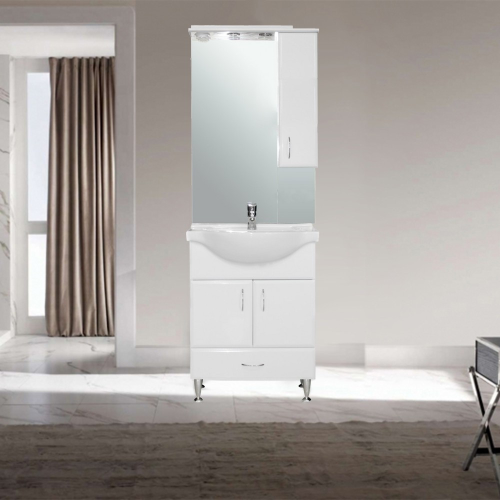 Bianca Plus 65 fürdőszoba bútor felsőszekrény, magasfényű fehér színben, jobbos nyitásirány