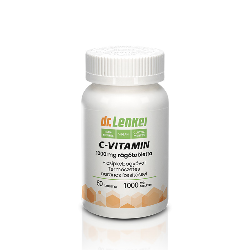 Dr. Lenkei C-vitamin 1000 mg narancsízű rágótabletta csipkebogyóval, édesítőszerekkel, étrend-kiegészítő, 60 db
