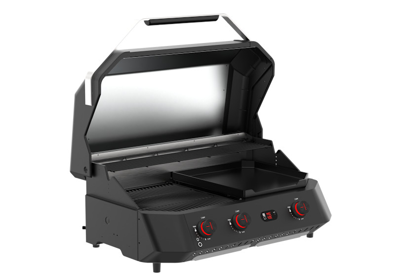 A Cozze® G-800 COMBO Plancha-Grill egyesíti a klasszikus grill és a plancha előnyeit, így bármilyen főzési stílus során kiváló eredményeket érhetsz el, nem kell kompromisszumokat kötnöd. Erőteljes, 9,5 kW teljesítményű és három precíziós égővel felszerelt, ez a grill maximális teljesítményt és rugalmasságot kínál, hogy változatos ételeket készíthess vele.