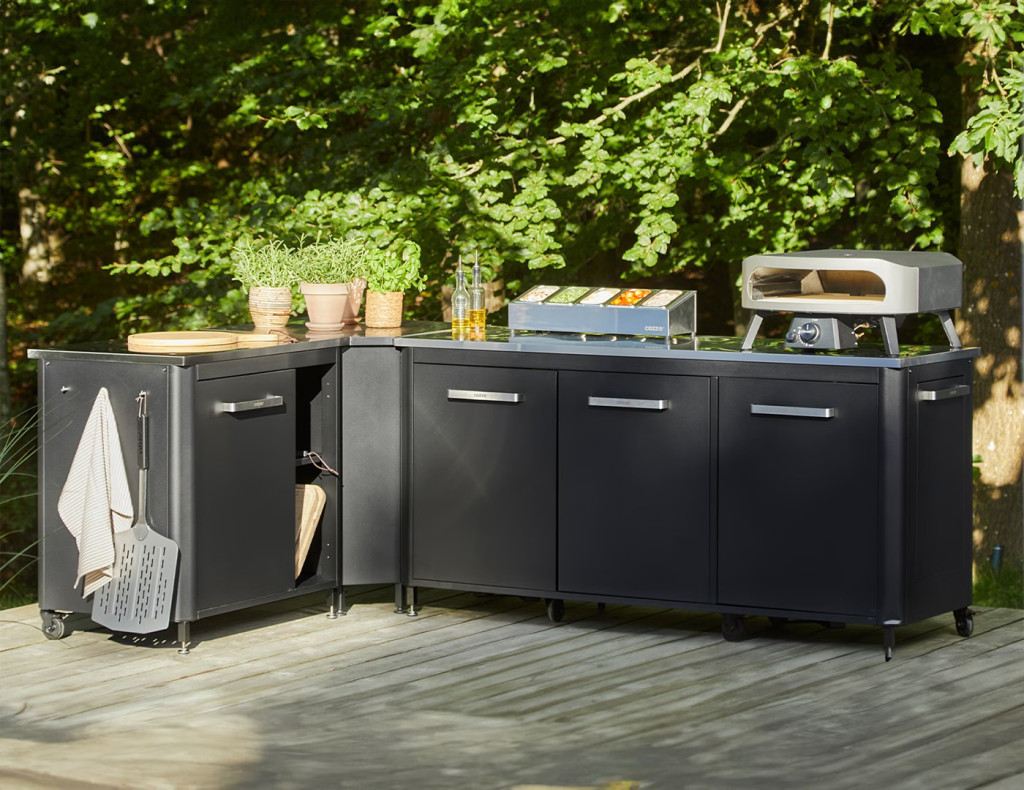 A COZZE sarok kerti konyha szett a szabadtéri főzés szabadságát és kényelmét hozza el neked! Praktikus kialakításának köszönhetően maximális tárolóhelyet és rugalmas elrendezést kínál. A szett egy nyitott polcos modulból, egy sarokmodulból és egy háromajtós munkapadból áll, így minden szükséges eszköz és alapanyag könnyedén elérhető.