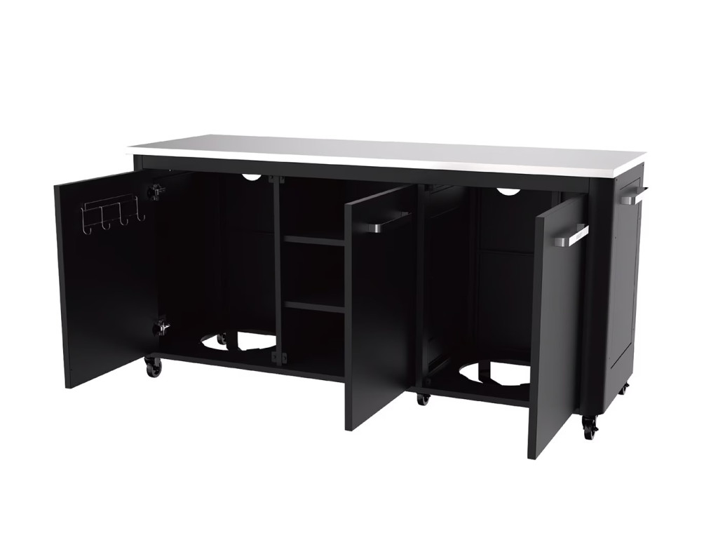 A prémium minőségű rozsdamentes acél munkafelület nemcsak elegáns megjelenést kölcsönöz, hanem tartós és könnyen tisztítható is. A masszív, időjárásálló szerkezet biztosítja, hogy a konyha hosszú éveken át ellenálljon az időjárás viszontagságainak.