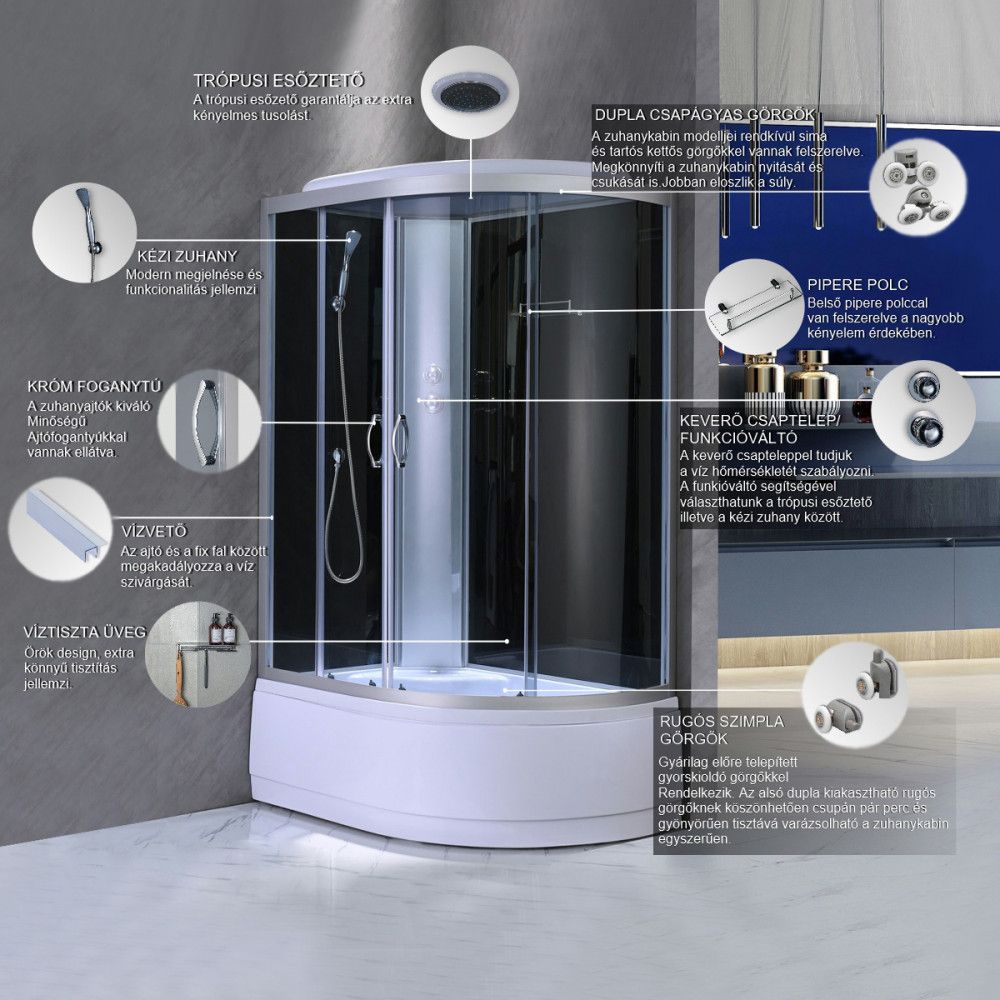 Cora mélytálcás zuhanykabin balos beépítési oldallal