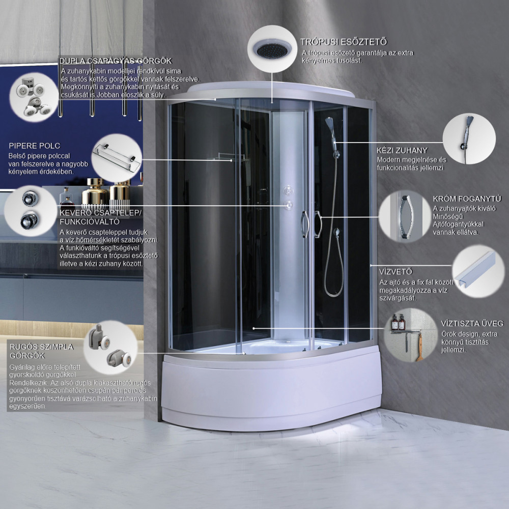 Cora mélytálcás zuhanykabin jobbos beépítési oldallal