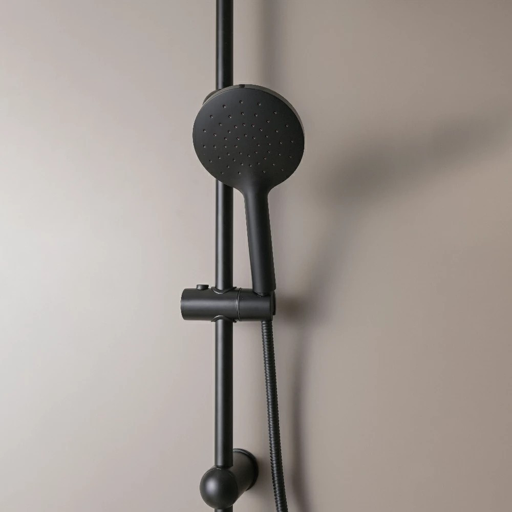 A Corina Black zuhanyszett stílusos és modern megjelenésű. Az ABS kézi zuhanyfej és esőztető minőségi anyagból készült, melynek köszönhetően sokáig élvezheti használatát. A zuhanyszett teste rozsdamentes acélból készül, kézi zuhany magassága állítható.