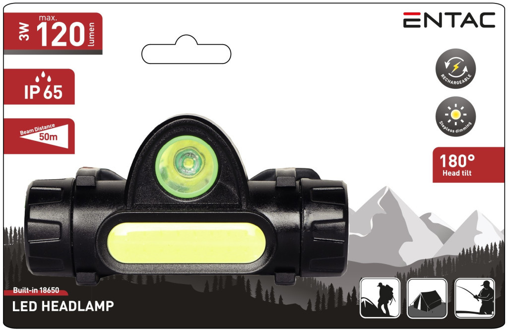 Entac Fejlámpa 3W beépített 18650 Akkumulátorral