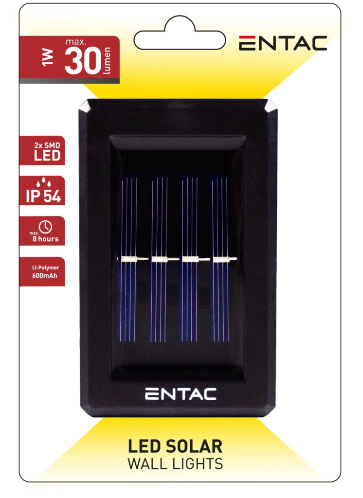 Entac Napelemes Műanyag Fali lámpa 1W 2 irányú világítás WW