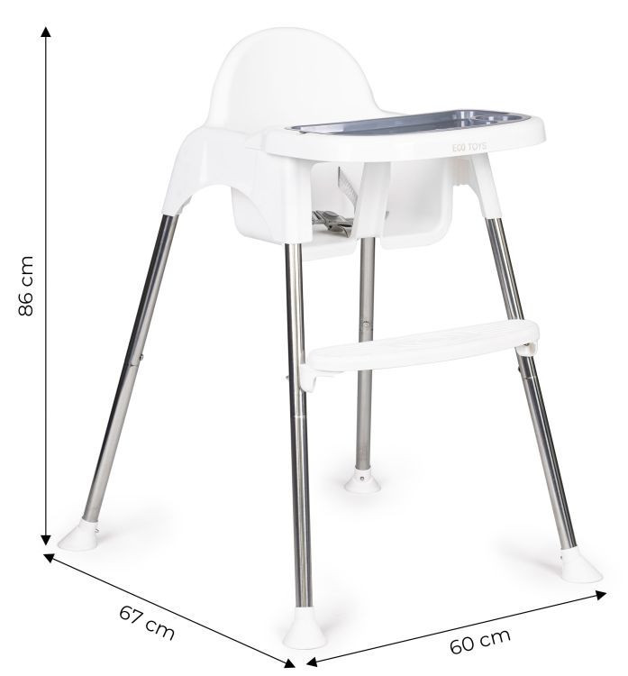 Etetőszék 2 az 1-ben tálcával övekkel fehér