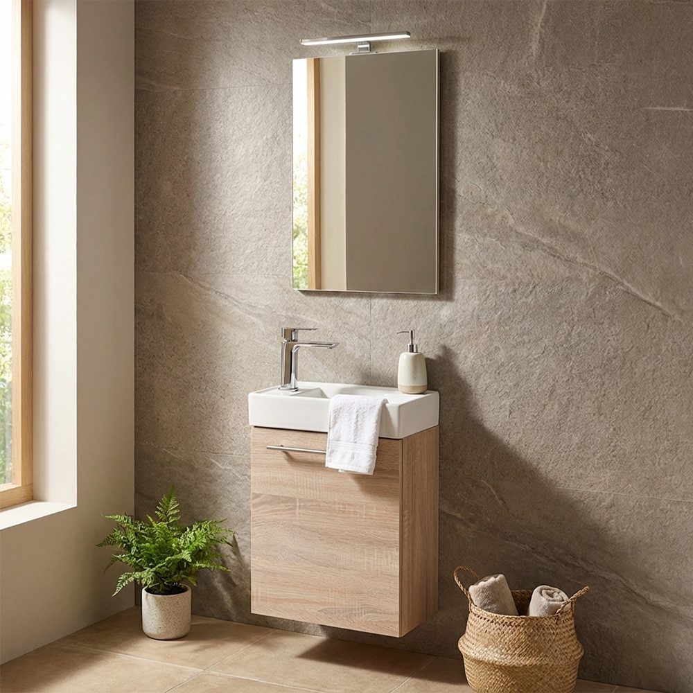 Modern és letisztult megjelenés a fürdőszobádban: Fantastic Alsó Fürdőszoba Bútor Sonoma Tölgy Színben