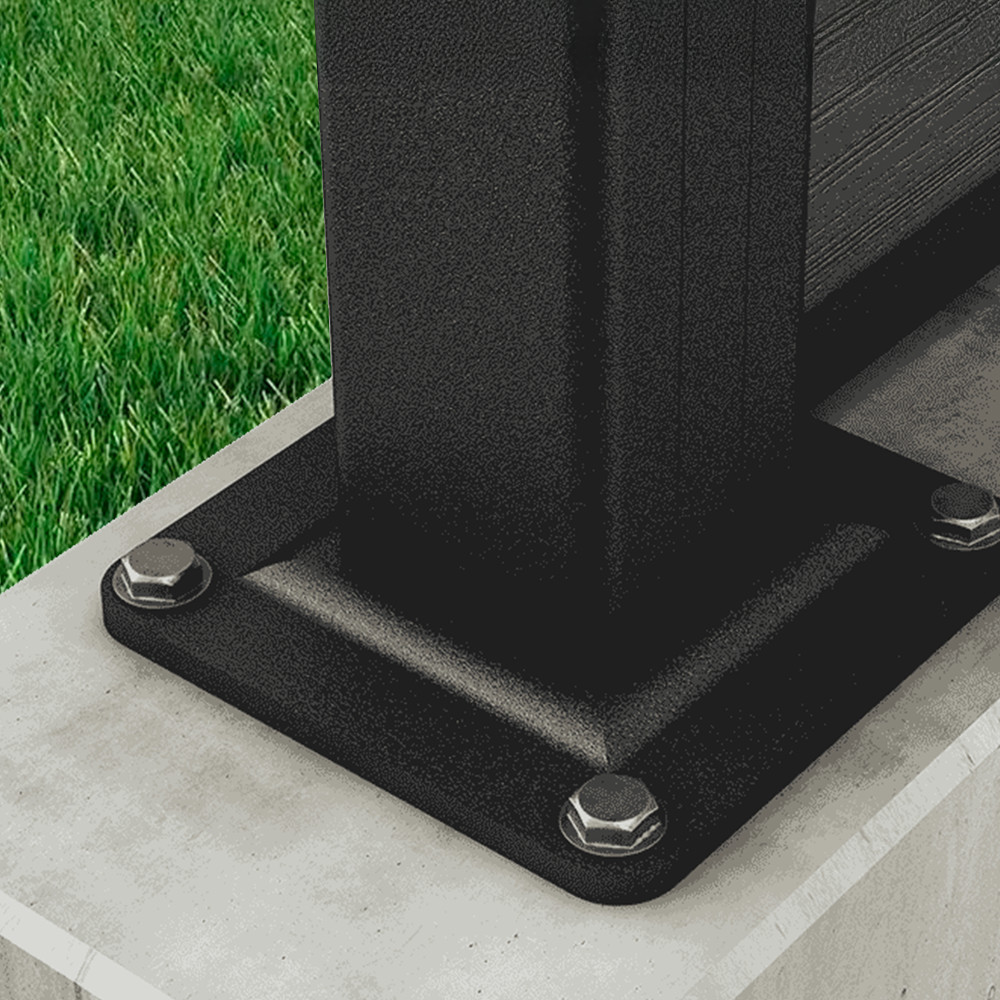 Nem igényel külön betonozást, így a szerelés egyszerű és tiszta folyamat. A pontosan illeszkedő panelrögzítési rendszer biztosítja a stabil, szélálló kerítésszerkezetet.