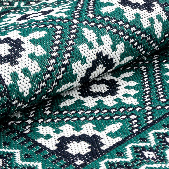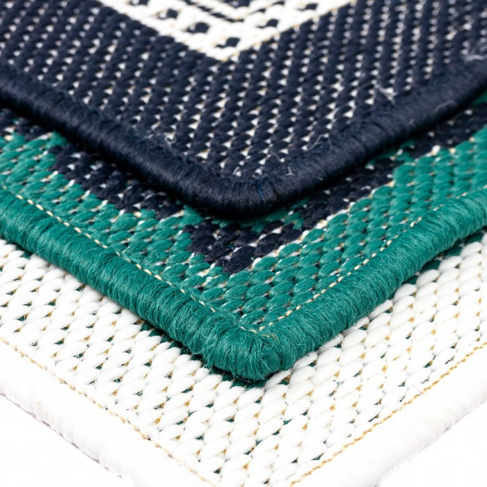 Univerzális kültéri szőnyeg, amely tökéletesen illik terasz, erkély vagy kert berendezéséhez. A szezon után beltéren is sikeresen használható. A divatos minták tökéletesen illeszkednek a jelenlegi dizájntrendekbe. A tömör szövés nemcsak tartóssá teszi a szőnyeget, hanem tökéletesen tapad a talajhoz is. A felhasznált anyagok puha tapintásúvá és kellemessé teszik a terméket.