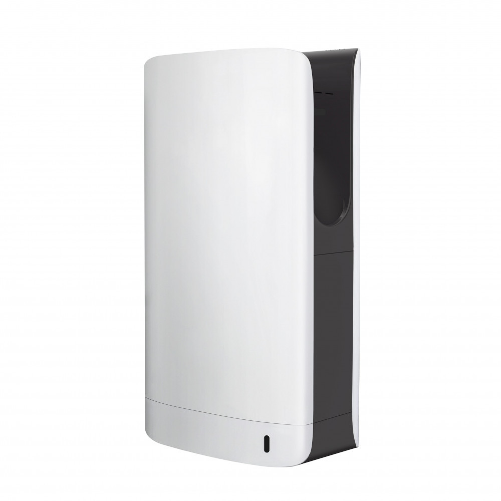 Extra keskeny kivitel. Az AK2065 kézbedugós airblade kézszárítók rendkívül gyorsak, akár 7 mp alatt képesek megszárítani az ember kezét. A levegő nagy sebeséggel apró fúvókákon keresztül áramlik ki, és lehúzza a vizet az ember kezéről. A lecsöpögő víz egy vízgyűjtő tartályba kerül, amit időnként üríteni kell. A beépített hepa szűrő megszűri a baktériumok 99,9%-át, így nem kell tartani a fertőzésektől. Kifejezetten alkalmas nagy forgalmú helyekre, például intézmények, vagy bevásárló központok, áruházak, sportlétesítmények mosdóiba.