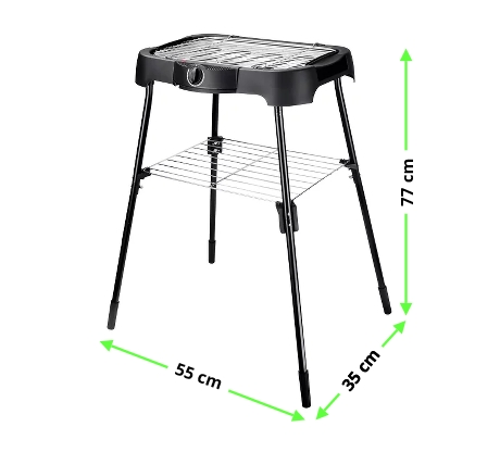 Az elektromos kerti grill névleges teljesítménye 2000 W, míg az elektromos tápegység 220 V -ot igényel. A mellékelt 1 m hosszú tápkábel lehetővé teszi a zökkenőmentes grillezést az áramforrástól rövid távolságra, így a kerti grill biztonságos távolságra helyezhető, például a faltól. További előny a főkapcsoló, amely megakadályozza az elektromos grill véletlen bekapcsolását. Az elektromos kerti grill könnyen tisztán tartható.