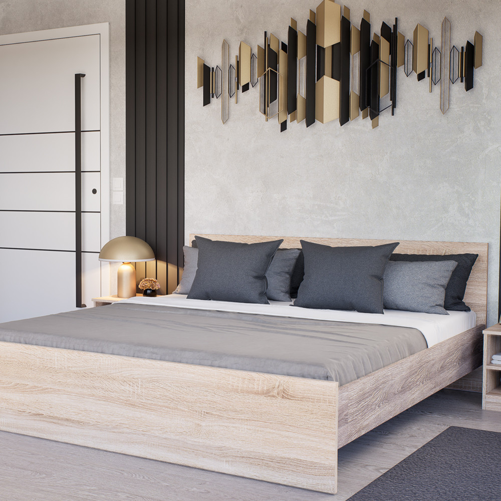 | Anyag | Kiváló minőségű bútorlap, yorki tölgy oldallappal, sonoma tölgy fejvéggel és ágyvéggel. |