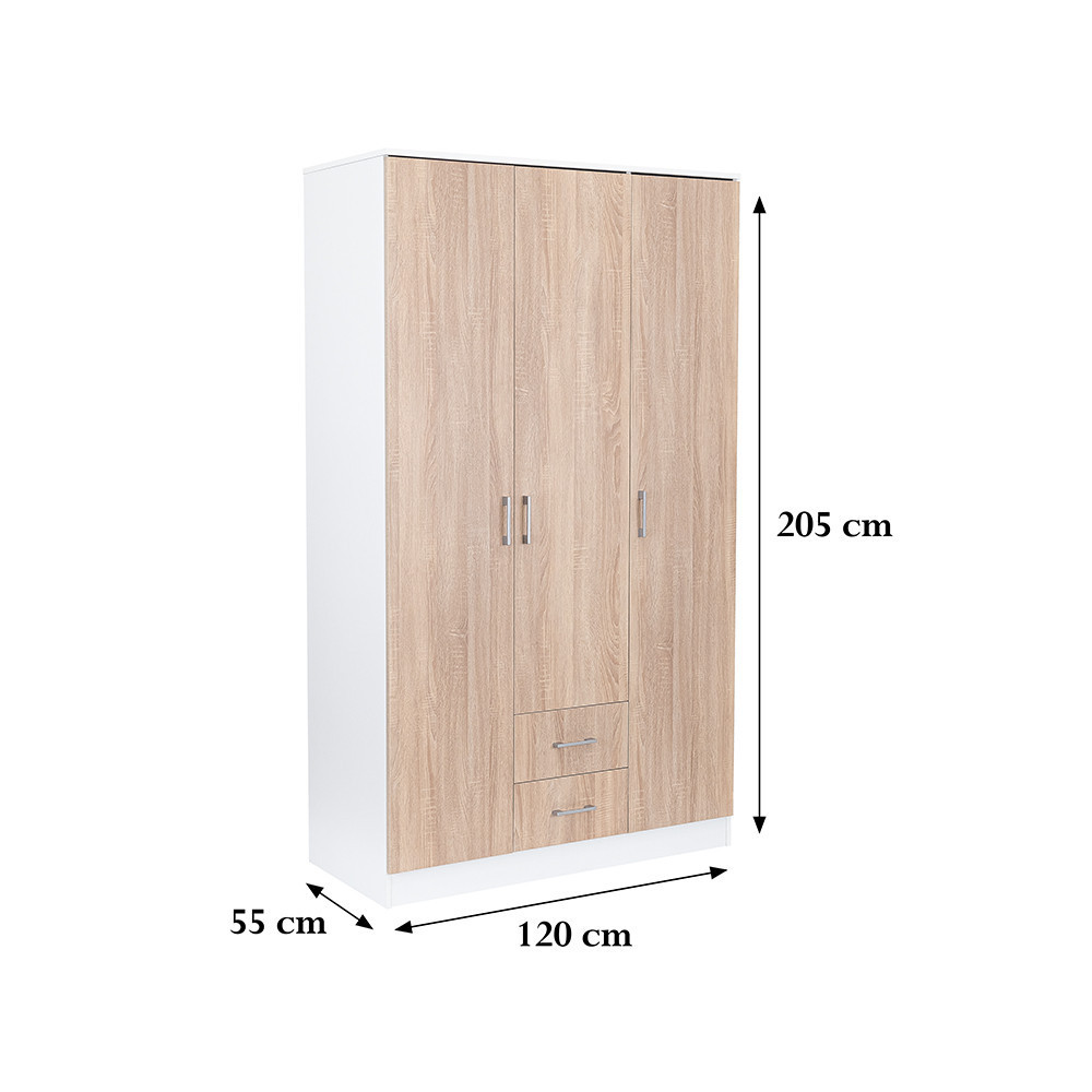 Miami gardróbszekrény 120x205 cm sonoma tölgy-fehér