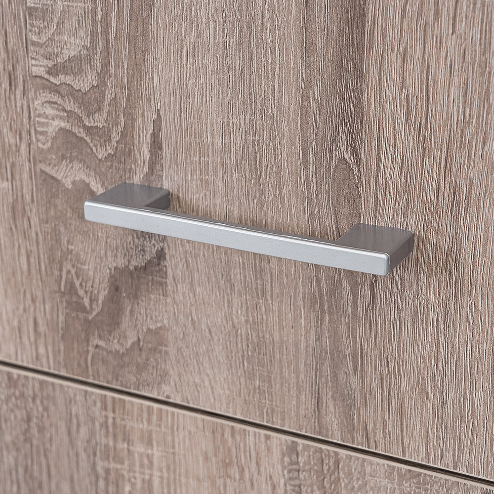 A matt króm hatású műanyag fogantyúk modern megjelenést kölcsönöznek, míg a két szárnyú nyílóajtó révén az egész szekrény belseje könnyen áttekinthető, így minden ruhadarab és tárgy könnyedén elérhető. Az öt polc és a két görgős fiók bőséges tárolóhelyet biztosít legyen szó ágyneműről, szezonon kívüli ruházatról vagy yorki tölgyneműkről.
