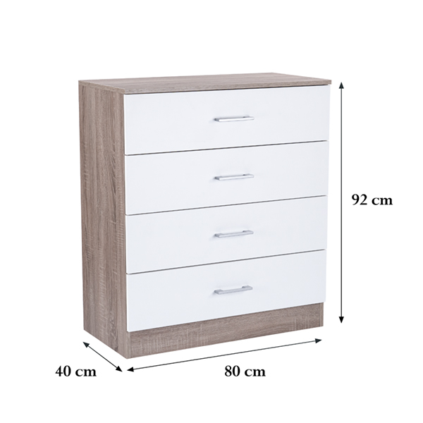 Miami komód 4 fiókos 80x92 cm fehér-yorki tölgy