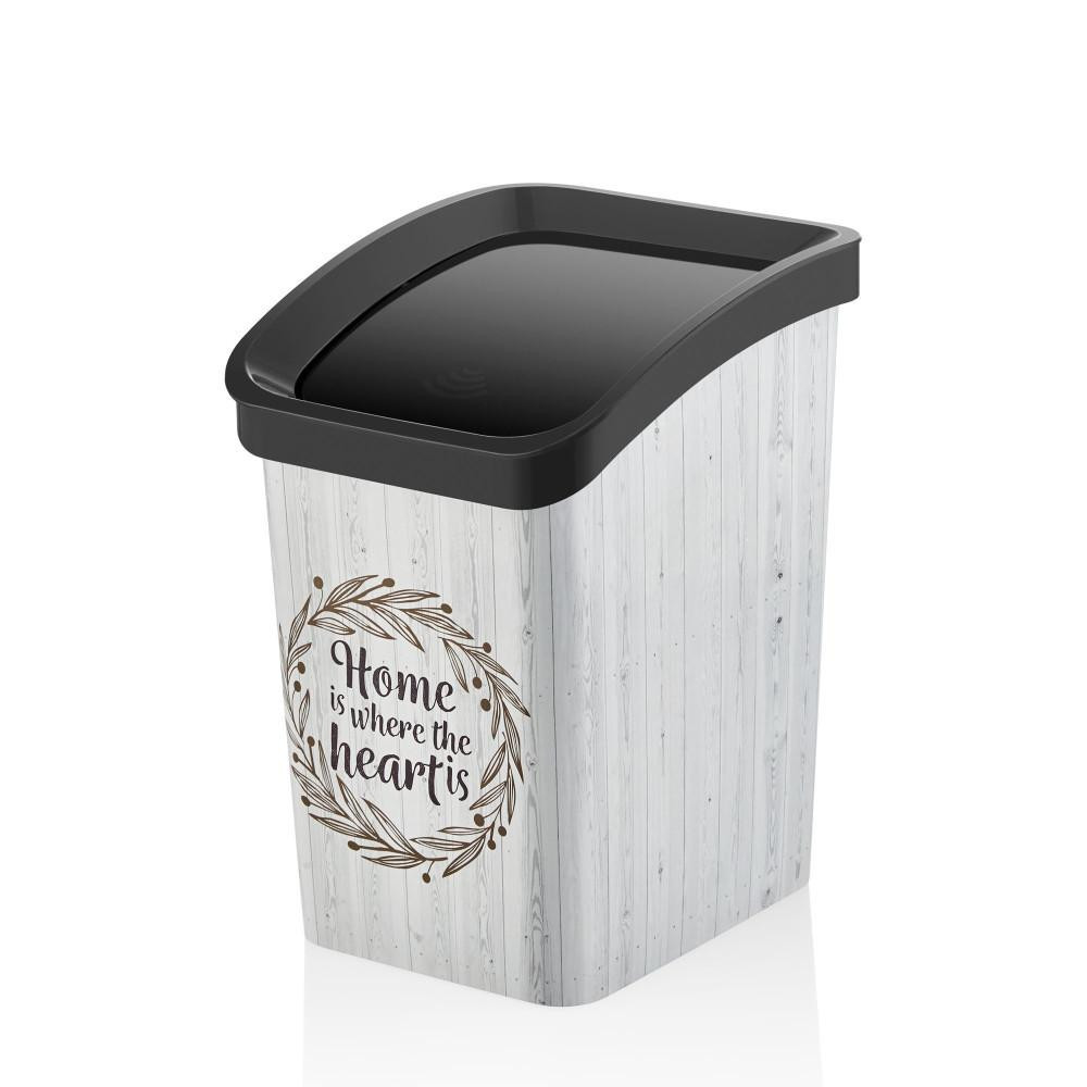 Műanyag Smart Click billenőfedeles szemetes, Fa mintás 12L