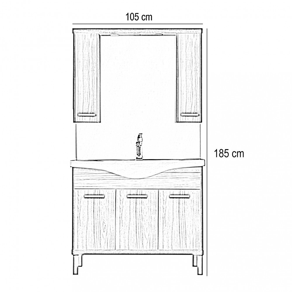 A fürdőszobabútor kevés helyet foglal viszont tágas alsó és felső szekrénnyel rendelkezik, ahol kényelmesen elférnek a fürdőszobai pipere eszközök. Kevés helyigénye miatt kisebb fürdőszobák berendezésére is alkalmas, például panel lakásokban. A termék magas minőségű bútorlapból készül és színben passzoló élzárókkal van ellátva. A fürdőszobabútor mosdóval együtt kapható.