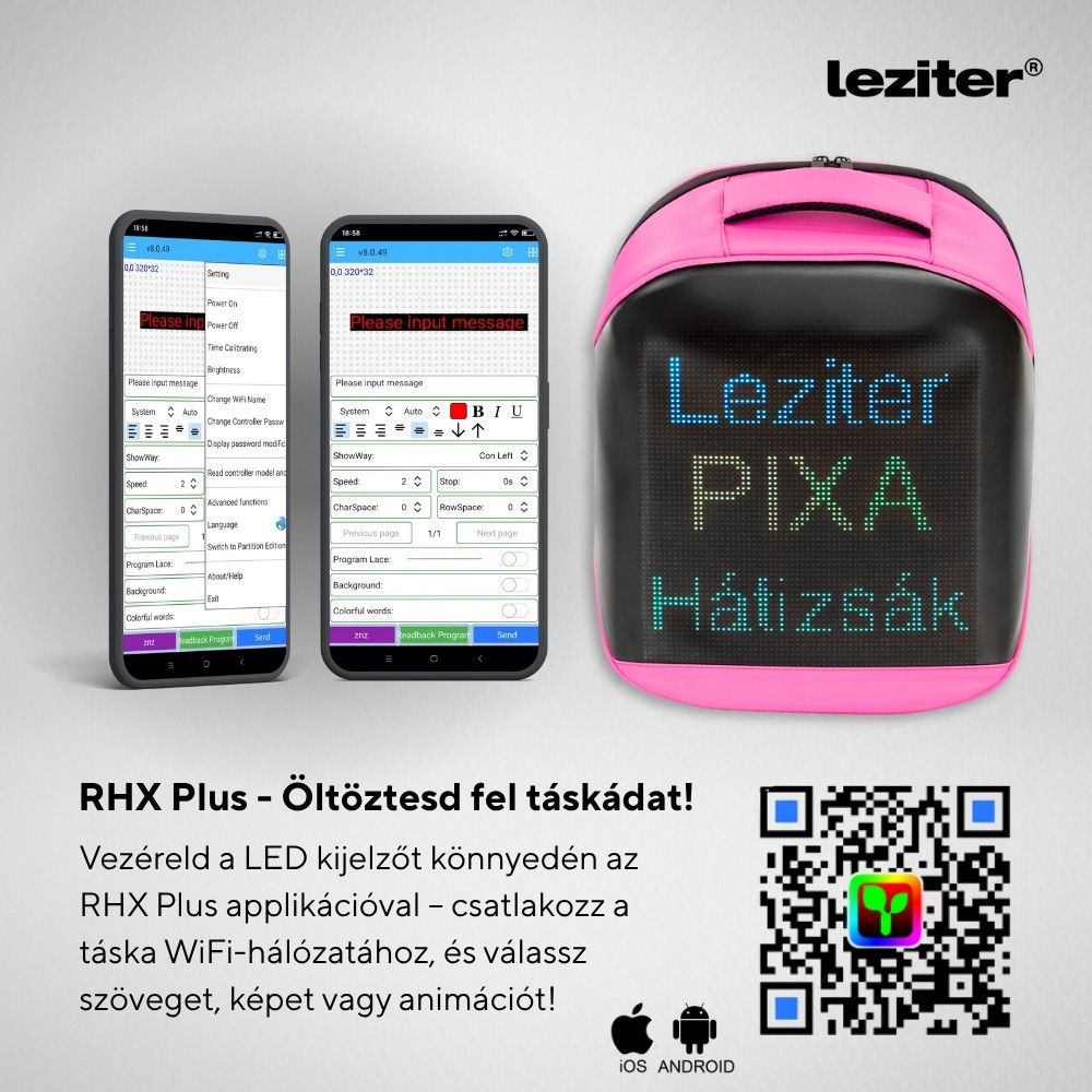 Legyen a Tiéd a Leziter Pixa LED okos hátizsák, és mutasd meg a világnak a stílusod, a kreativitásod és az egyéniséged minden lépéseddel – mert mostantól te írod a saját fényüzeneteidet!