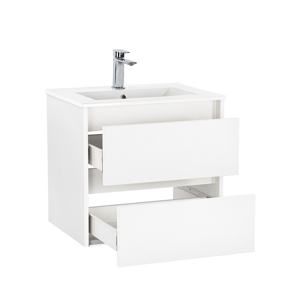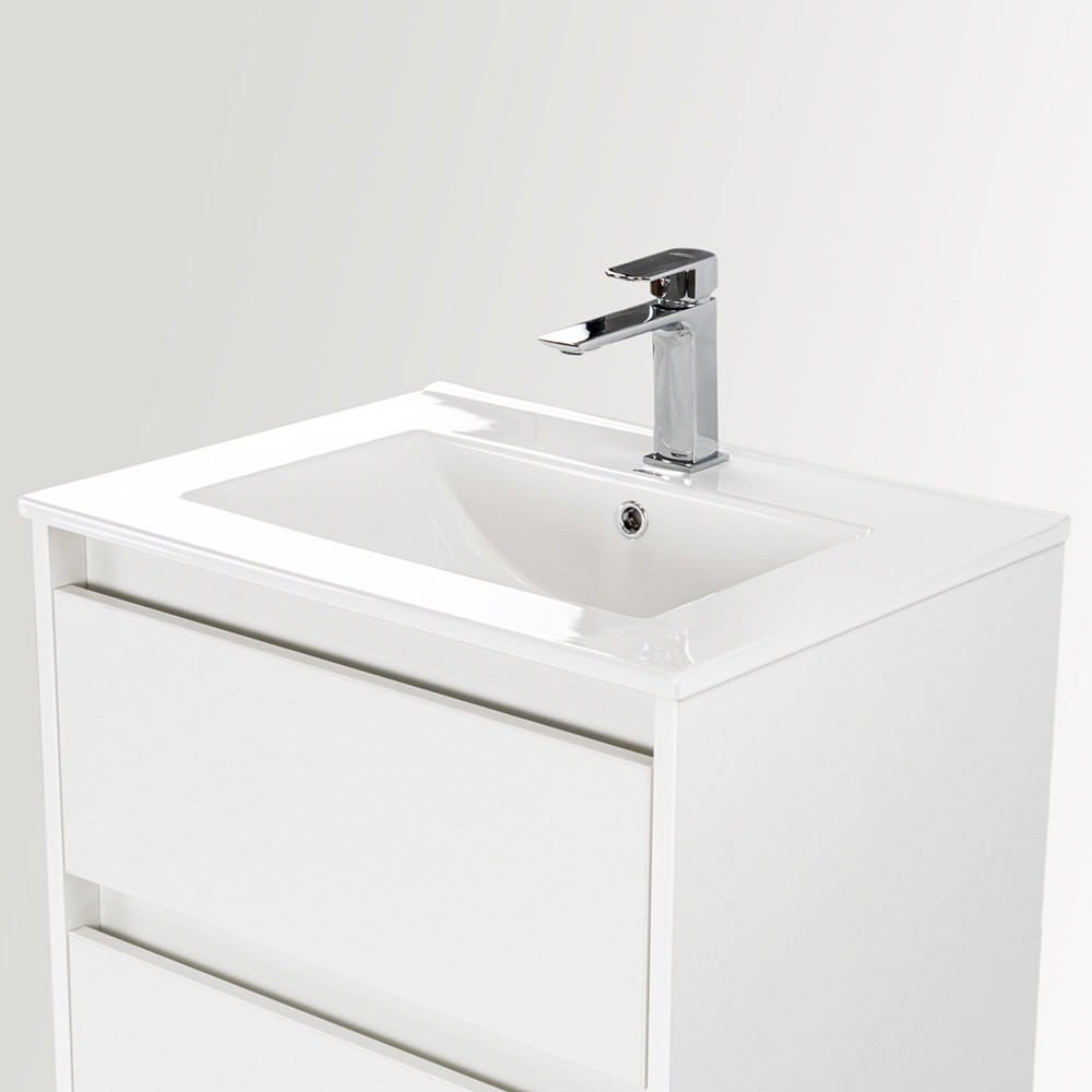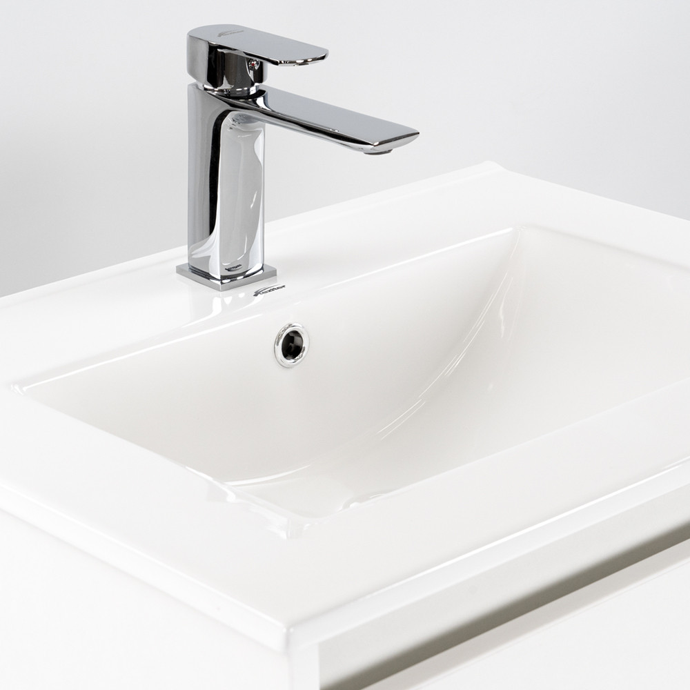 A csomag részét képzi egy méretben passzoló kerámia mosdó is, így ezt nemkell külön beszereznie. A mosdó elkészítésekor kiváló minőségű kerámiát alkalmaztak, ezzel garantálva az időtállóságot. A mélymedencével ellátott mosdóban egy csaptelepnek van kialakított hely.