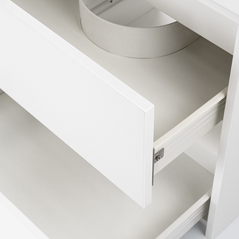 A funkcionalitás mellett természetesen a bútor megjelenésére is nagy figyelmet fordítottak. fehér színének és letisztult modern vonalainak köszönhetően harmóniát teremt az összes fürdőszoba hangulatában.