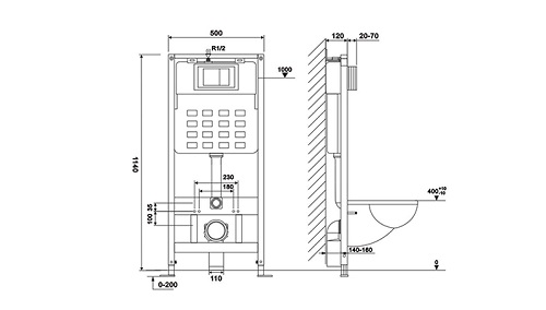 A ROYA falba építhető WC tartály mérete 500 x 120 x 1140 mm, ami optimális a legtöbb fürdőszobai elrendezéshez. Kompakt és helytakarékos kialakítása lehetővé teszi, hogy tökéletesen beilleszthető legyen a fürdőszobájába.