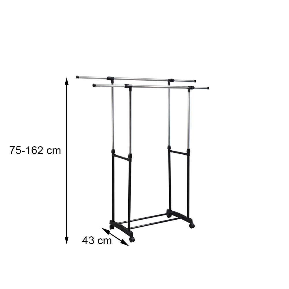 - Rugalmas használat: Az állítható magasságnak és a két szintnek köszönhetően a ruhaállvány különböző méretű ruhákhoz és kiegészítőkhöz is igazítható, legyen szó hosszú kabátokról, blúzokról vagy akár cipőkről.