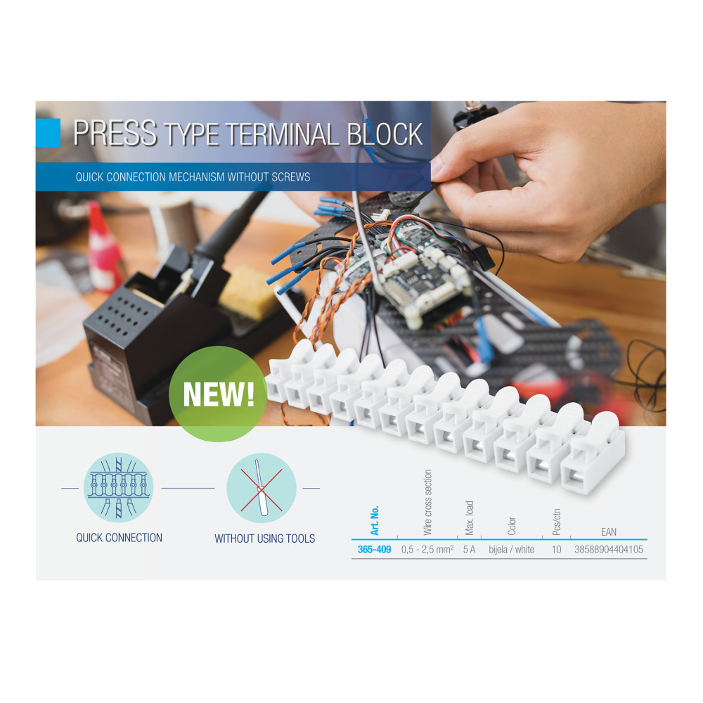 Commel sorkapocs használata rendkívül egyszerű, gyors és biztonságos, nincs szükség csavarhúzóra a vezeték rögzítéséhez,