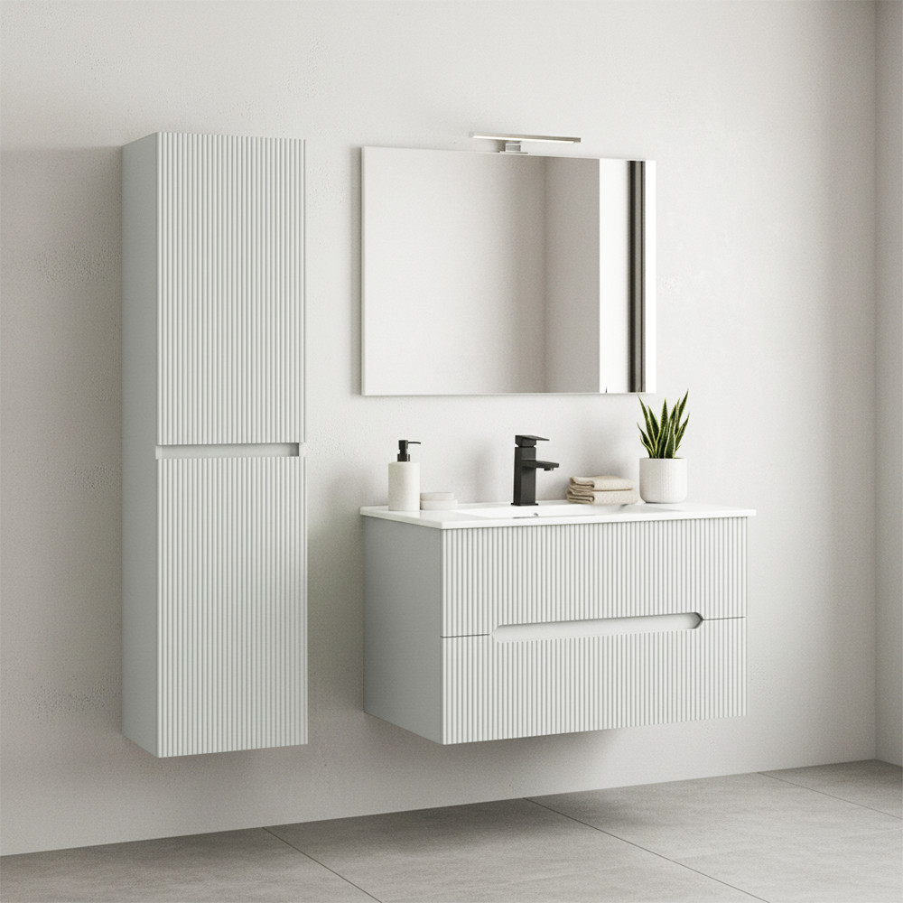 A Leziter Trent függesztett oldal szekrény letisztult, modern megjelenésével tökéletes kiegészítője bármely Trent fürdőszobabútornak – vagy önálló tárolóként is ideális választás. A bordázott frontok harmonikusan illeszkednek a minimalista és skandináv stílusú enteriőrökbe. Praktikus méreteinek köszönhetően kényelmes tárolóhelyet kínál anélkül, hogy értékes padlófelületet foglalna.