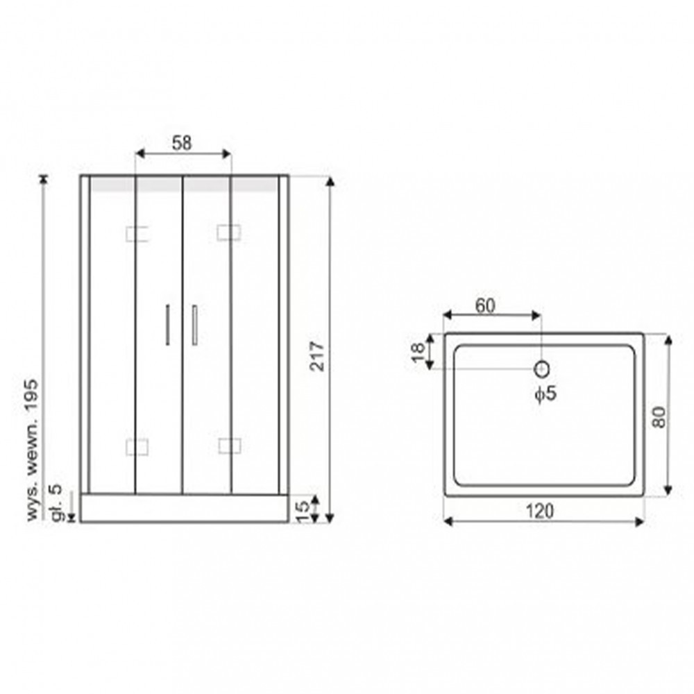 TULUZA hidromasszázs zuhanykabin, 120x80x217 cm-es méretben
