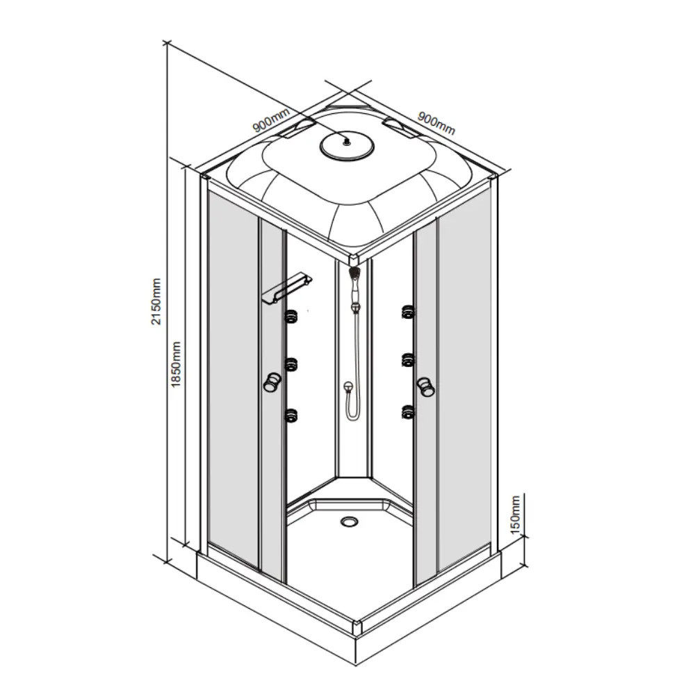 Valerie 90x90 cm szögletes hidromasszázs zuhanykabin