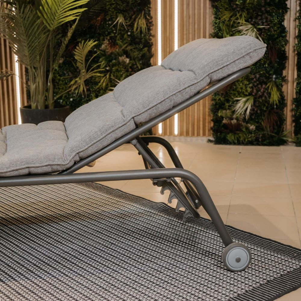A kerti nyugágy nemcsak az 5 fokozatban állítható támlának, hanem a poliészter párnának is köszönhetően kivételes kényelmet biztosít . A puha és kellemes tapintású párna további támaszt nyújt a hátnak, ideális helyet teremtve a szabadban való pihenéshez. A párna poliészterből készült, amelyre jellemző a nagyobb nedvességállóság, tökéletes kültéri használatra.