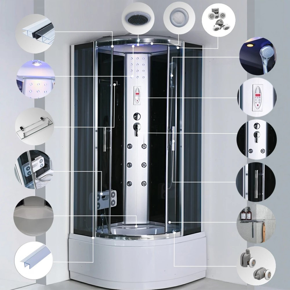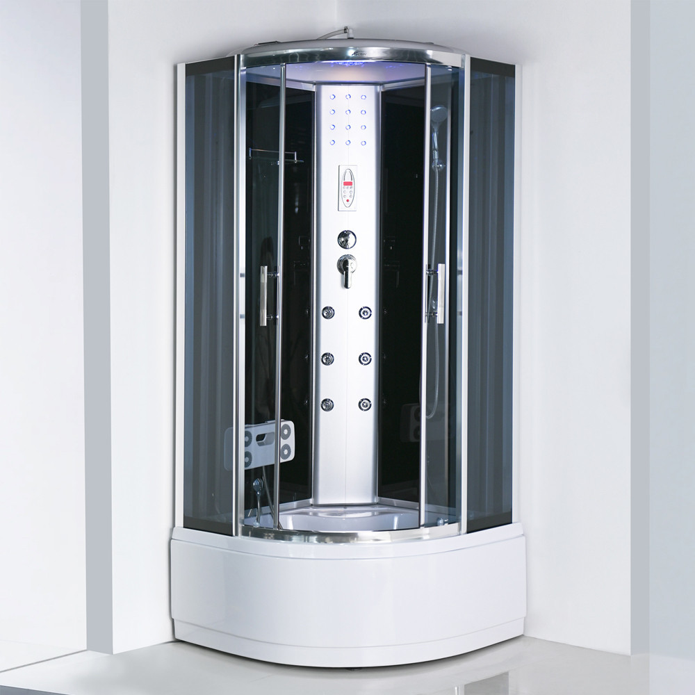 Vital Black 90x90 cm íves mélytálcás hidromasszázs zuhanykabin