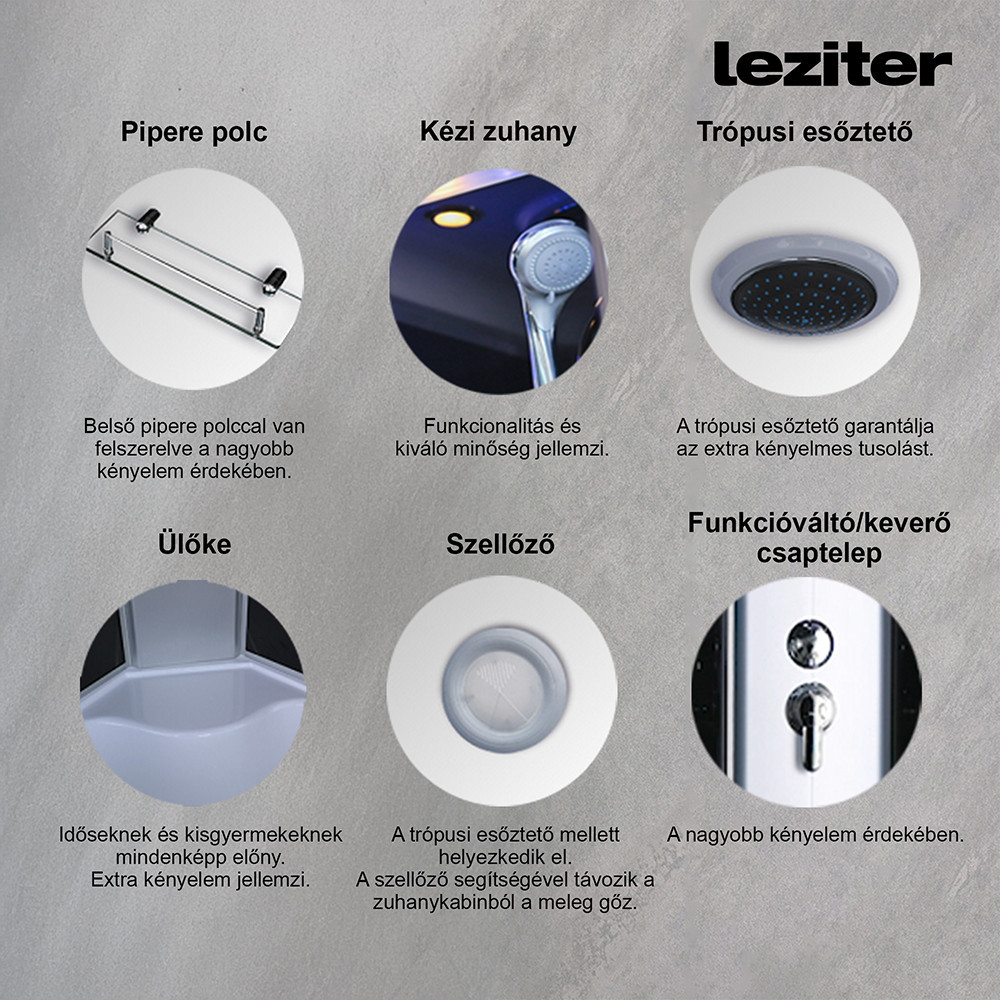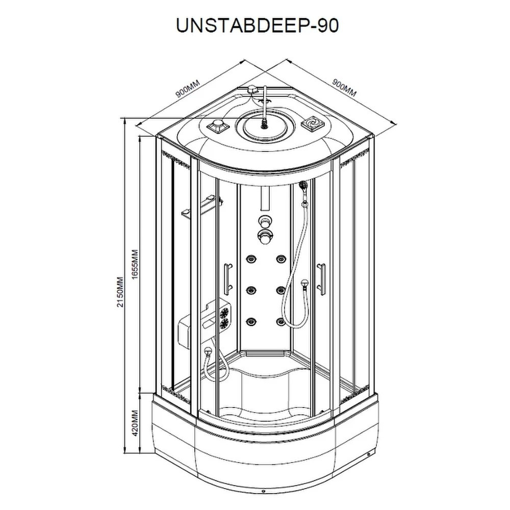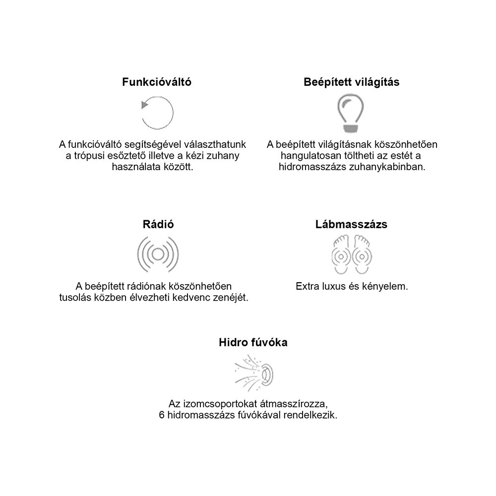 Vital mélytálcás hidromasszázs zuhanykabin, 90x90 cm-es méretben