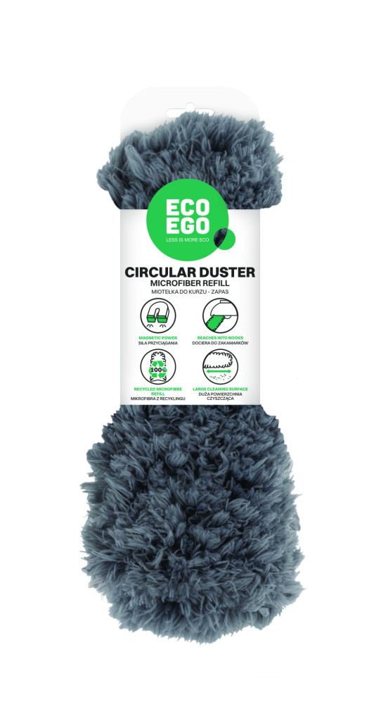 Az ECO termékcsalád kör alakú portörlő utántöltője azoknak az igényeit elégíti ki, akik értékelik a praktikus megoldásokat. Az új kendő felhelyezése másodpercek alatt elvégezhető – egyszerűen távolítsa el a használt fejet, csatlakoztasson egy újat, és máris folytathatja a takarítást. A nyél cseréje egy környezetbarát, újrahasznosított anyagból készült új fejre tisztelgés a bolygó előtt, és bizonyíték arra, hogy a hatékony takarítás nem kell, hogy felesleges hulladék keletkezésével járjon.