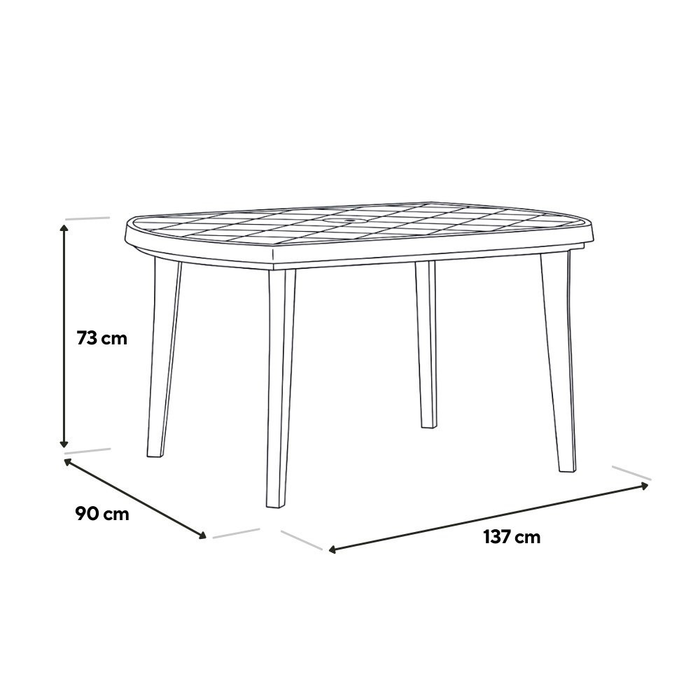 - 1 db Elise műanyag kerti asztal – 137 x 90 x 73 cm