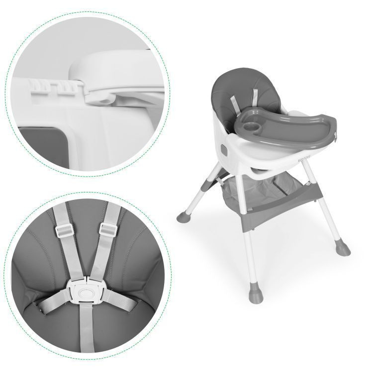 Gyerek etetőszék tálcával és kosárral 5 pontos biztonsági övvel szürke