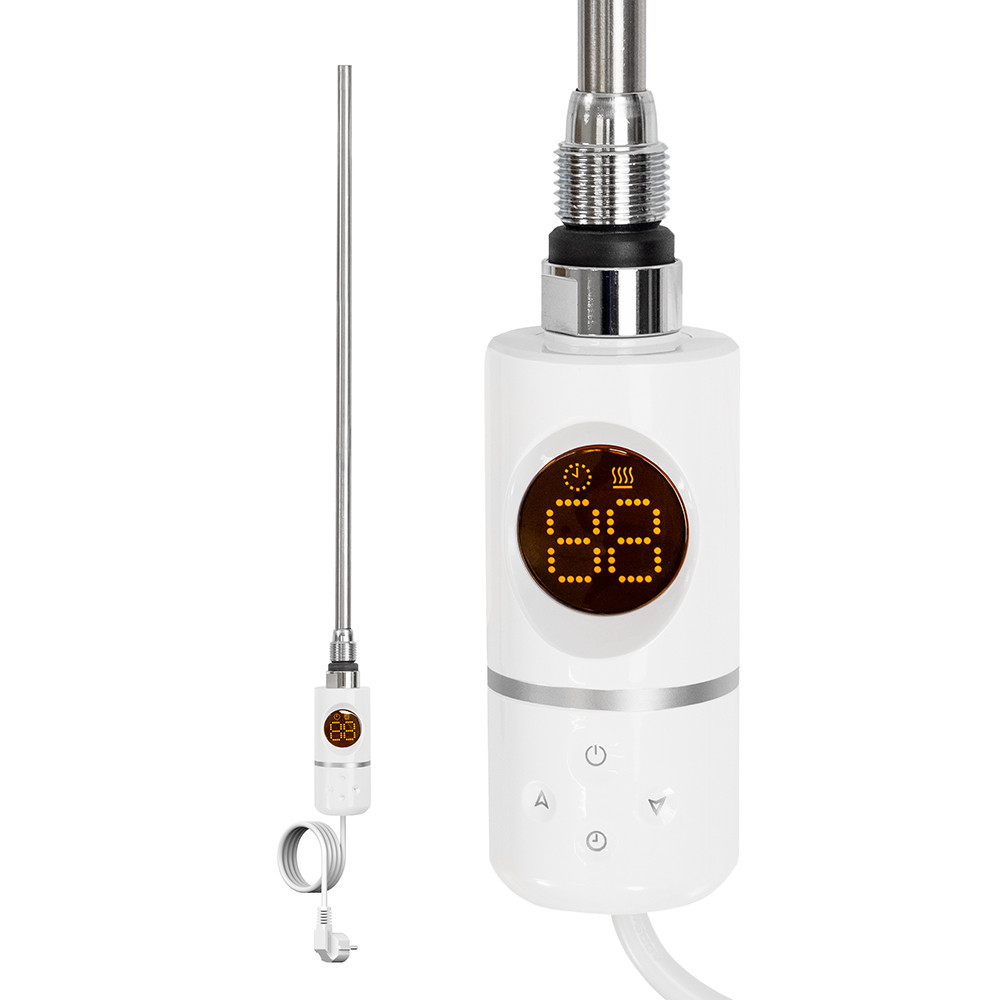 Elektromos fűtőpatron törölközőszárító radiátorhoz digitális hőfokszabályozóval 600W fehér – precíz vezérlés, nagy teljesítmény, modern design