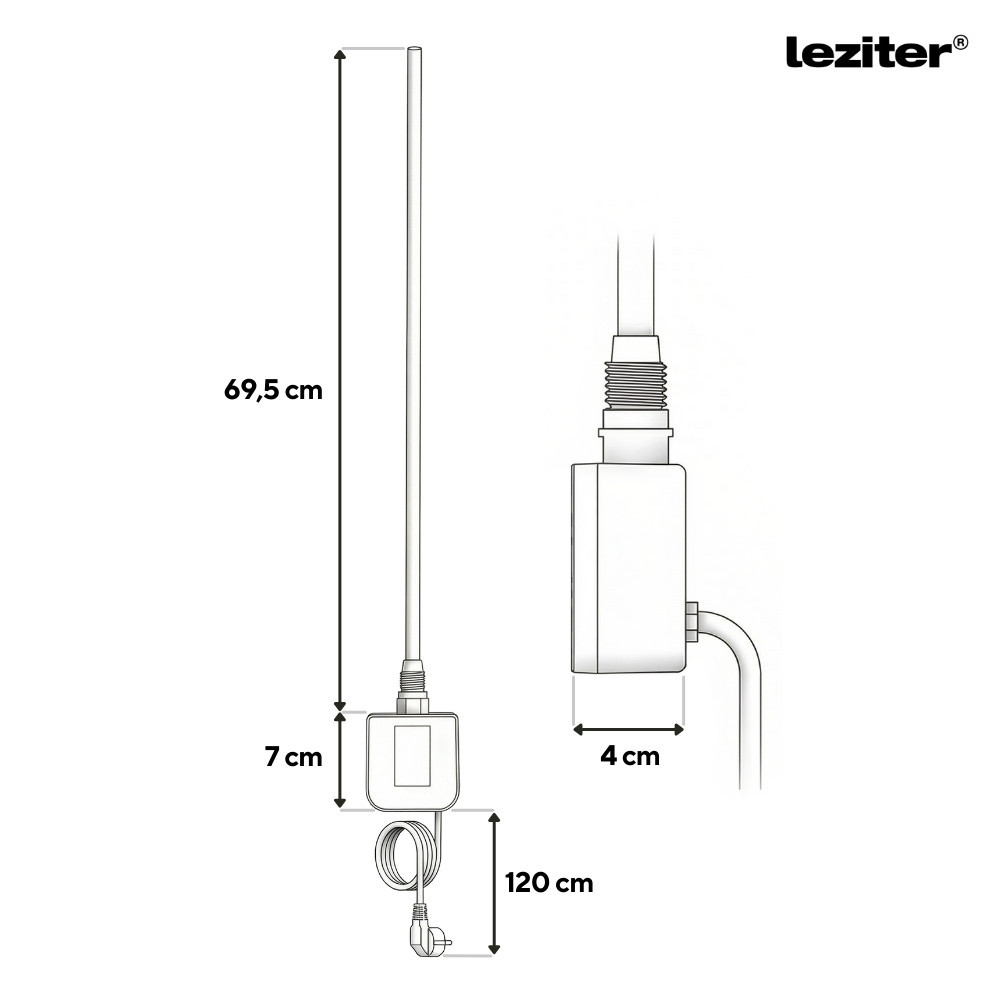 Az univerzális csatlakozásnak köszönhetően szinte minden szabványos törölközőszárító radiátorhoz illeszthető, így könnyen telepíthető és azonnal használatra kész.
