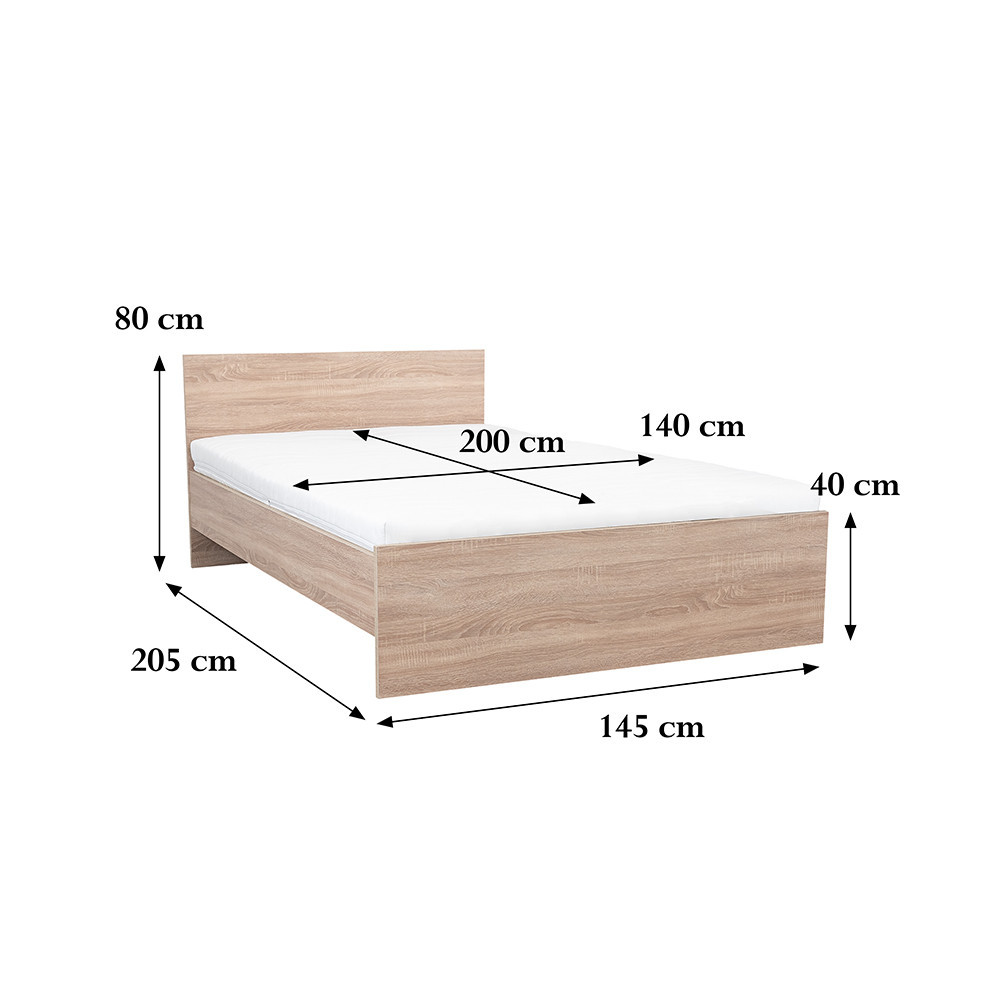 Miami franciaágy ágyneműtartó nélkül 140x200 cm sonoma tölgy-sonoma tölgy
