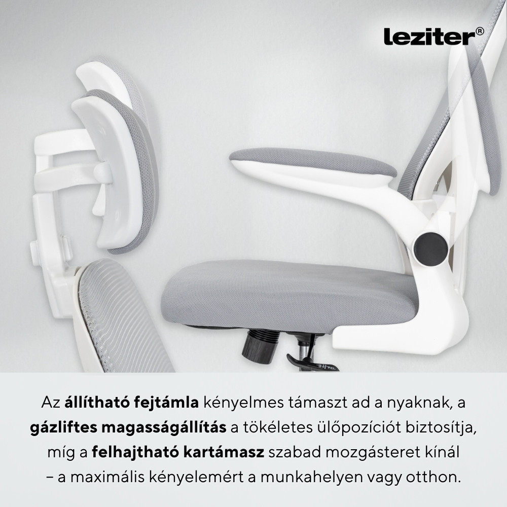 A Flexo forgószék egy egészségtudatos döntés. A kialakított deréktámasz stabil alátámasztást biztosít az ágyéki gerincszakasznak, segít megelőzni a hátfájdalmakat, míg az állítható fejtámla komfortos támaszt nyújt a nyaknak hosszú munkanapok alatt is. Ez különösen fontos, ha napi 6–8 órát vagy többet töltünk ülőmunkával.